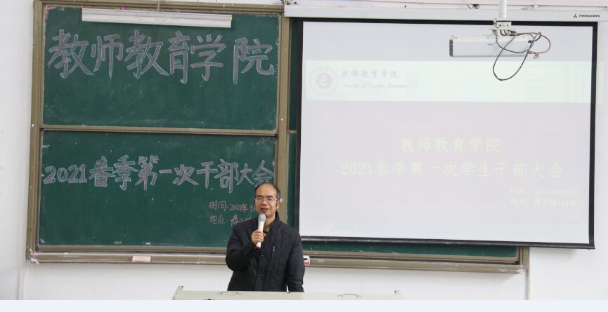 2021年3月9日12点30分,教师教育学院于博文楼114教室召开2021年春季学期第一次学生干部大会。教师教育学院党总支副书记王斌,辅导员文娟、朱小平以及学院团总支学生会全体成员参加了此次会议。此次会议由王斌副书记主持。
