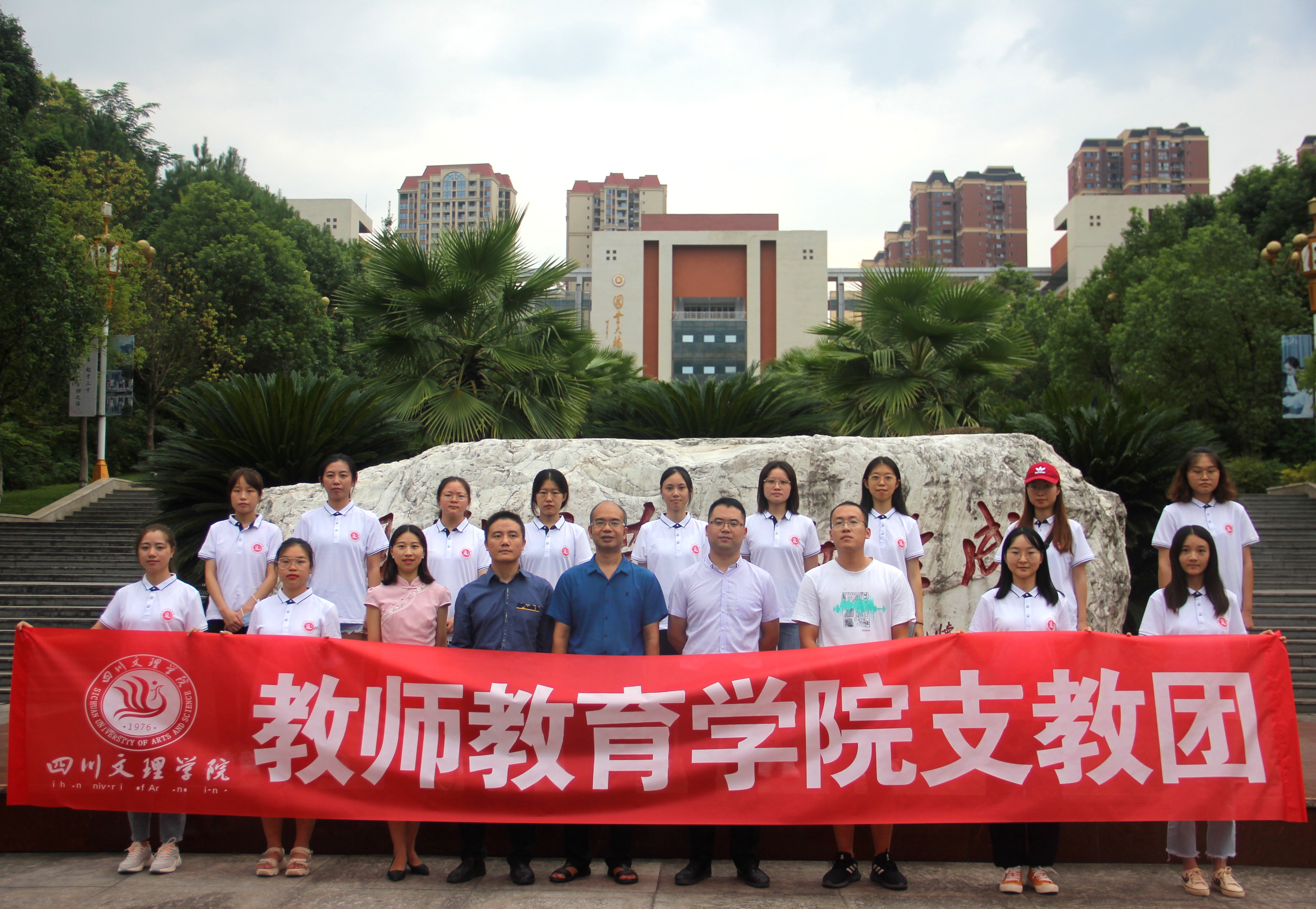 2020年秋季凉山州金阳县支教工作暨出征仪式结束后,教师教育学院在喷泉广场处,对即将奔赴金阳县支教的14名学生举行欢送留影活动。党总支副书记王斌、副院长周波、学工办主任邓超、专职辅导员文娟、朱小平,参加了此次活动。