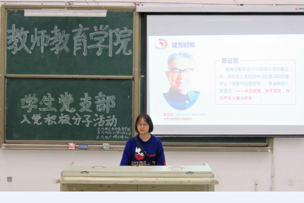 2019年10月30日18:00点,教师教育学院学生党支部在博文楼114教室开展了十月入党积极分子学习活动。学院大二、大三、大四各班的入党积极分子以及马列部部分成员参加了此次活动。马列部副部长汪琪担任本次活动的主持人。