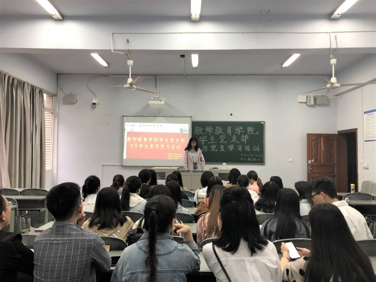 为进一步提升支部学生党员党性修养,着眼于实现中华民族伟大复兴的中国梦、强国梦, 9月18日下午6点,教师教育学院学生党支部在博文楼210室开展了“传承军旅精神”九月党日活动。教师教育学院团总支马列部席梅舒等部门成员、莫乾凤等31名学生党员,参加了此次学习活动。本次活动由席梅舒同志主持。