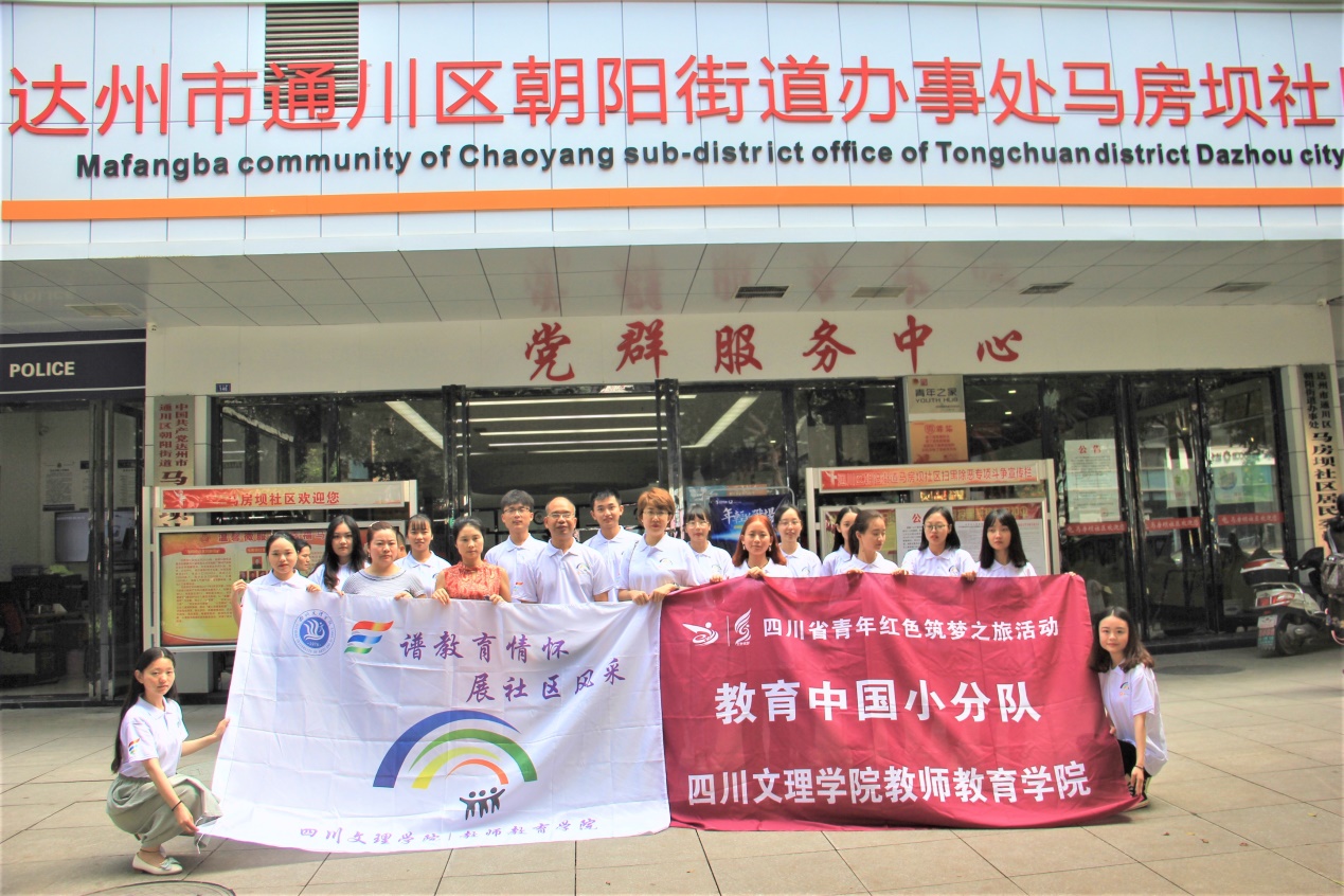 为深入贯彻党的十九大精神及习近平总书记系列重要讲话精神,引领青年学生树立和践行社会主义核心价值观,坚持将社会实践与志愿服务有机结合,教师教育学院积极响应校团委组织开展的四川文理学院大学生志愿者暑期文化、科技、卫生“三下乡”社会实践活动,开展了本次“谱教育情怀,展社区风采”暑期社会实践社区服务活动。