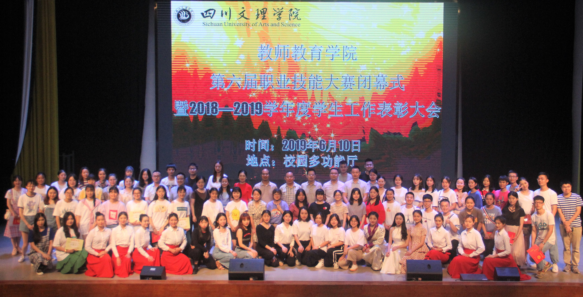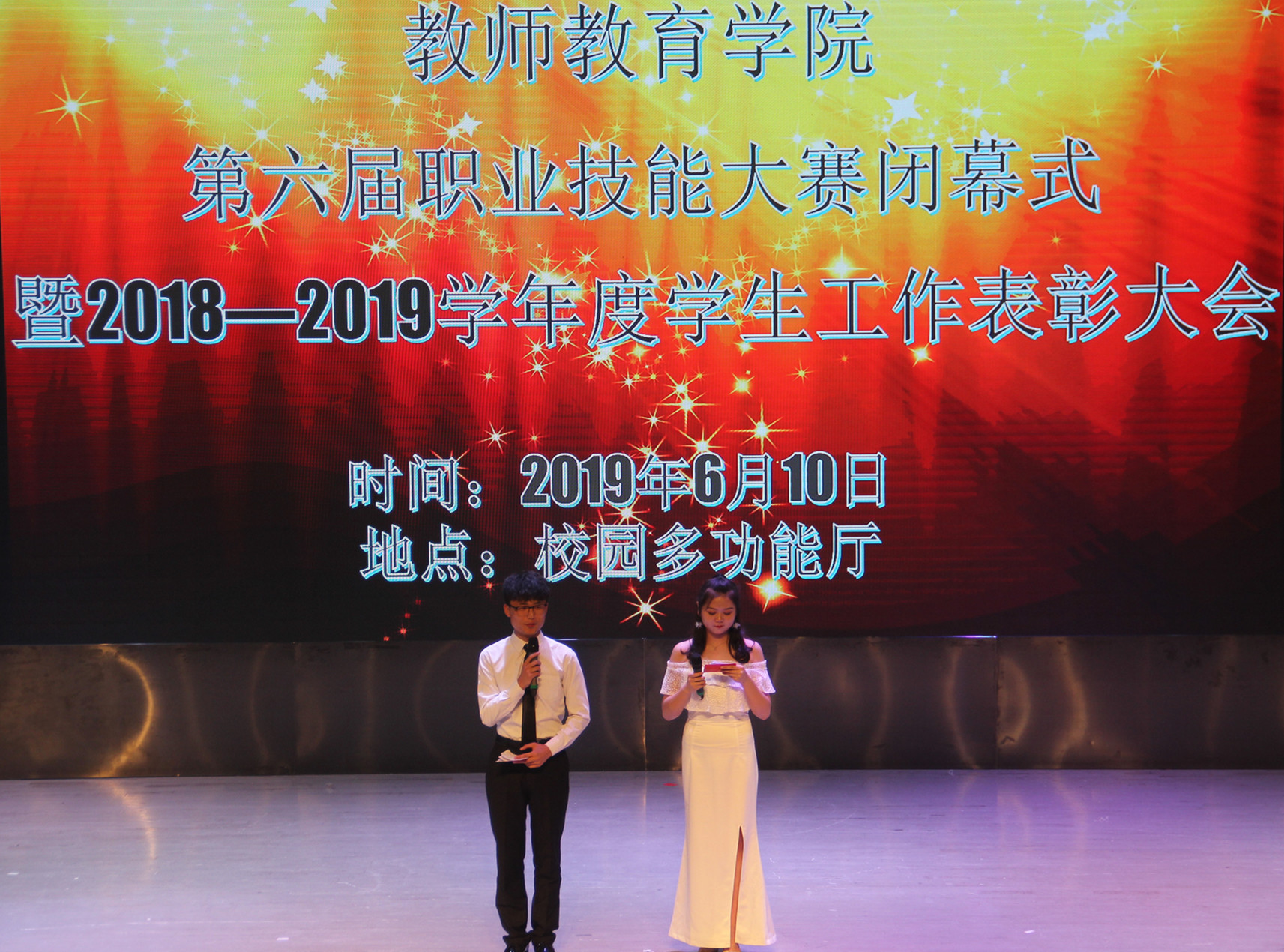 2019年6月10日晚19:00点,教师教育学院第六届职业技能大赛闭幕式暨2018-2019学年度学生工作表彰大会在校园影院举行,学院党总支书记王燮辞教授、院长何树德教授、党总支副书记王斌老师、副院长刘箭老师、教师教学发展中心副主任黄培森教授等领导以及学院老师25人出席本次大会。