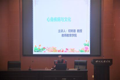 为进一步丰富教师教育学院广大学子的学习生活与精神世界,活跃学术氛围,2019年5月13日晚7点,我院在莲湖新区图书馆学术报告B厅举行了“心身疾病与文化”专题讲座。教师教育学院院长何树德教授担任本次讲座主讲人。教师教育学院部分学生参加了此次讲座。