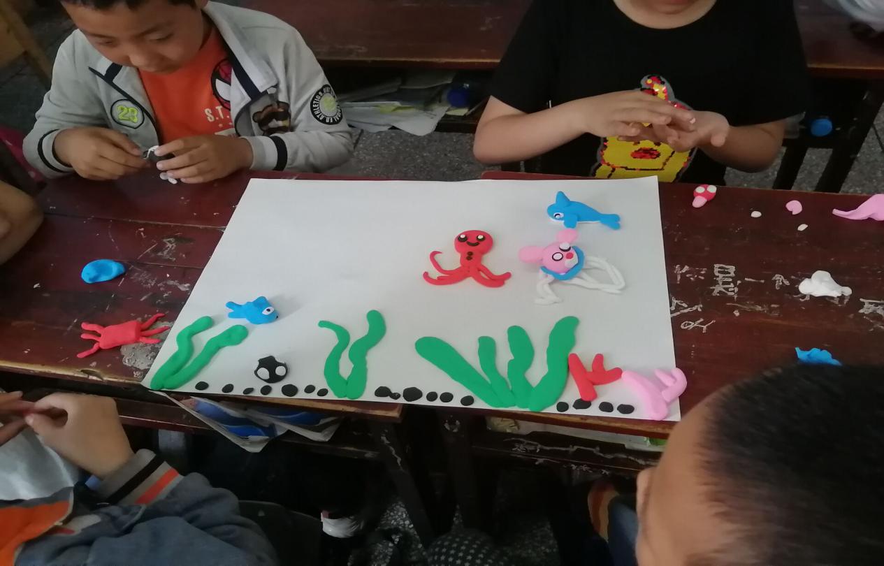 本次支教的对象是东岳镇中心校三年级的学生,支教的内容为 轻黏土的制作。六名志愿者们首先向孩子们介绍了什么是轻黏土,然后带领孩子们在教室里完成了轻黏土的作品制作。在此过程中,孩子们积极参与,发挥想象,自己动手完成了属于自己的轻黏土作品。
