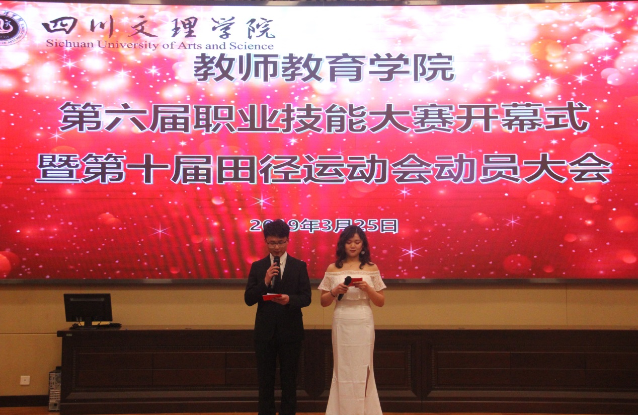 2019年3月25日晚7点,教师教育学院第六届职业技能大赛开幕式暨第十届田径运动会动员大会在我校莲湖校区学术报告厅A厅顺利举行。教师教育学院院长何树德教授,党总支副书记王斌老师,辅导员文娟老师,以及大三部分学生、大一大二全体学生参加了此次大会。本次大会鼓舞人心,激励同学积极参加学院职业技能大赛、学校运动运,提高了同学们参与的热情与积极性。