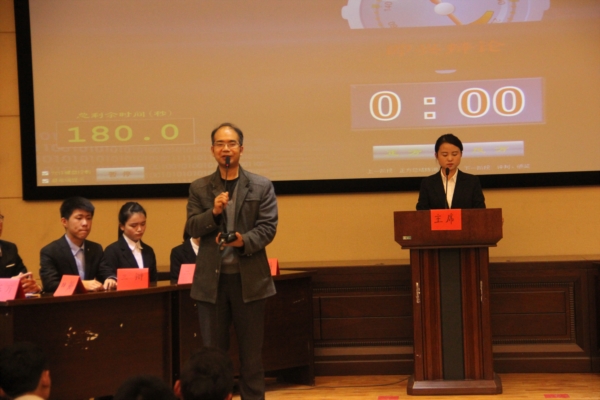 双方选手各自作了简短的介绍及大会主席详细宣读规则以后,本次比赛正式拉开序幕。此次辩论赛围绕“两个人在一起选择喜欢的更重要还是选择合适的更重要”这一辩题展开。在开篇立论环节中,正反双方选手简要的阐释了各自的观点。在接下来的攻辩和自由辩论环节中,正方选手扣住本次主题中的“选择”一词,以其瞬时性来反驳对方辩友的长远性。反方辩手也不甘示弱,巧释喜欢之义,抓住对方疏漏处步步紧逼。双方开始唇枪舌战,场上气氛紧张而又令人激动,各位辩手的从容不迫、侃侃而谈引得台下观众掌声喝彩连连不断。紧接着进入观众提问阶段,面对在场观众尖锐的问题,辩手们都巧妙运用自身思辨能力迅速给出了令人信服的答案。在总结陈词环节中,正反方四辩都重申了己方观点并对对方辩友在比赛中存在的错误进行了纠正和辩驳。接下来,彭静老师对比赛进行了点评,指出双方存在的不足之处,同时也表达了对辩手们的激励和赞赏。王斌书记对本次比赛进行了总结,表达了对辩手们的肯定并希望优秀辩手能够在接下来的校辩论赛中取得更加优异的成绩,为学院创造辉煌。