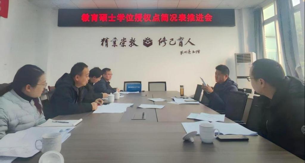 为扎实推进教育硕士学位授权点申报简况表填报工作,我院于2026年1月15日9:00,在博文楼206A会议室,召开了教育硕士学位授权点简况表填报专题推进会。会议由学院院长黄培森主持,各专业方向骨干教师参会。
